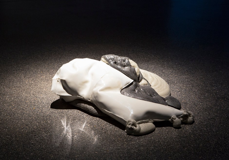 “Inteligencia emocional #1” es una pieza que, a pesar de su pequeño tamaño, resulta trascendental en el itinerario que plantea la presente exposición, una obra que actúa de conexión entre la introducción de las dos primeras salas y el nudo conceptual que se desarrolla en las dos siguientes, y que se completa [sala 3] con la escultura de suelo puntualmente iluminada titulada “Inteligencia emocional #2” (2016) y la videoproyección “Inteligencia emocional #3” (2016) que, en cierta medida, recoge el proceso de gestación de la anterior. Ya en su proyecto “El hombre invisible” (2003)[9], Amparo Sard incorpora a su acervo creativo y expresivo la figura humana tridimensional –y la sección de alguna de sus partes- representadas mediante esculturas de polietileno, unos volúmenes sencillos que cobran una nueva perspectiva gracias a una transparencia que, para la presente propuesta, tiende a volverse cada vez más y más opaca. Estas figuras trascienden la función de meros contenedores, considerándolas, no sólo como la forma externa que nos iguala y que nos diferencia, sino también como la frontera y el nexo que nos separa y que nos une del resto de seres y, por supuesto, de nuestro propio entorno. Unos cuerpos, o unos trozos de ellos, que en ocasiones comparecen traspasados, sobrepasados y permeables a todo aquello que nos rodea, absolutamente desbordados material y espiritualmente. La artista recurre a lo próximo, a lo íntimo, a lo humano, para superar lo evidente, para narrarnos lo que hay más allá, los extremos que esconde la epidermis, lo que podemos y lo que no podemos contener; y lo hace con la sutil poesía desgarrada de quien es capaz de ver lo invisible, comprenderlo, enriquecerlo y comunicárnoslo.