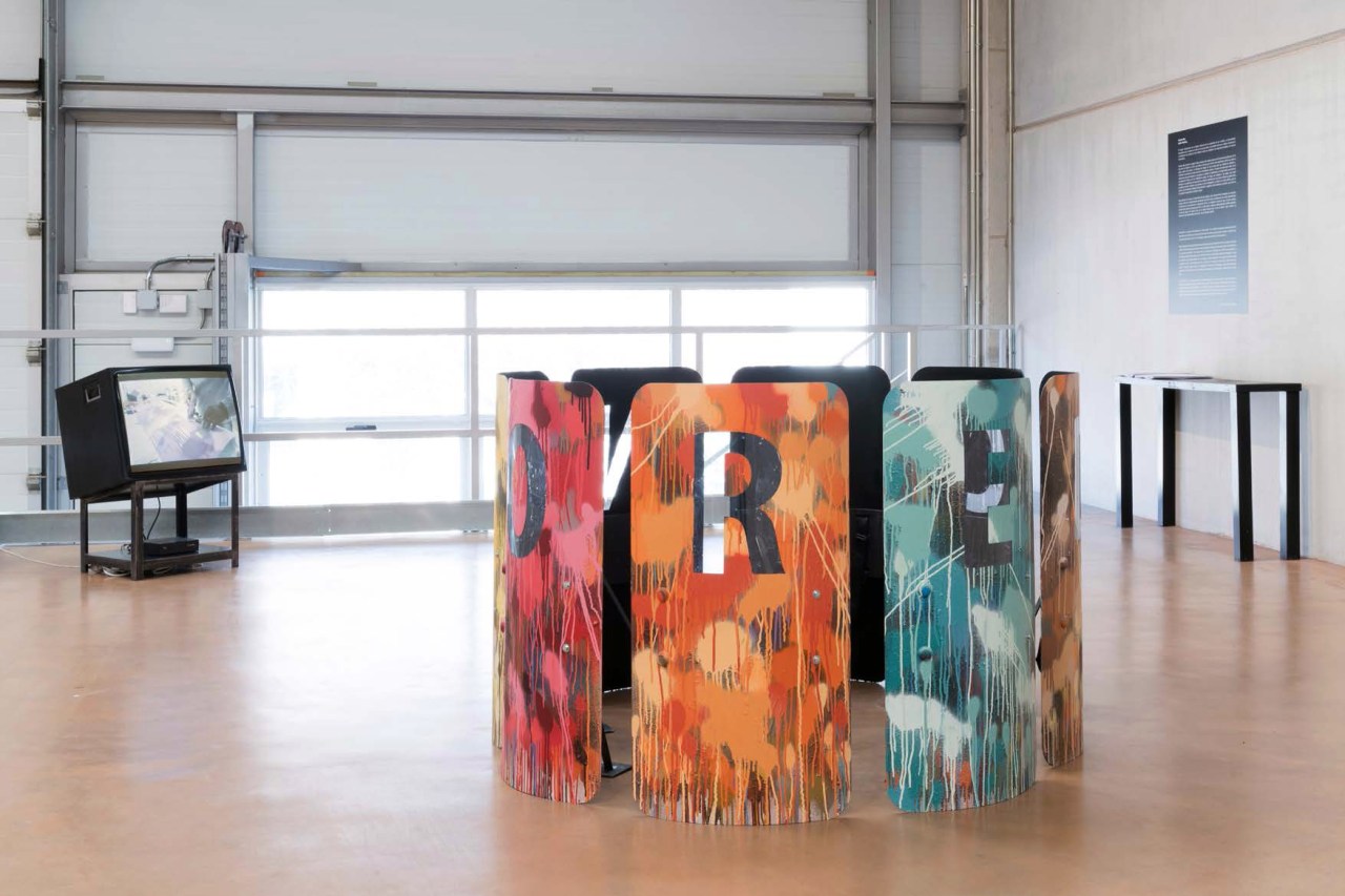 El escudo antidisturbios es un objeto construido con la pretensión de ser invisible, un policarbonato transparente que no quiere ser visto a la vez que permite a su portador observar y vigilar a través de él, un dispositivo que parece de mera defensa cuando en realidad es de respuesta inmediata y de control contundente. Avelino Sala comenzó a emplear estos escudos como soporte para sus intervenciones pictóricas con la serie “Give me Shelter” en 2016, cuyo título ya anticipa una fricción entre significados contrarios, entre el poder coactivo del escudo y el concepto de refugio. En ella ya deja clara su voluntad de visibilizar y modificar la semántica de estos elementos intimidatorios gracias a la pintura lanzada sobre ellos con la vehemencia que lo haría el opositor, el insurgente, el rebelde, el manifestante, el encapuchado, mientras entra en contraposición directa con los emblemas del poder, con los logos, las banderas o las siglas que están impresos en su superficie. Los escudos son puestos en evidencia por una acción artística que tiene tanto de poética como de violenta y que ahonda en una investigación, ya clásica en el arte político, que se refiere a esa contradicción ambigua entre protección y vigilancia, entre confianza y coacción, que se da entre los cuerpos de seguridad de cualquier estado y sus propios ciudadanos. Una intervención plástica y conceptual que descubre que, tras la función aparente de estos escudos, se esconden las letras que dan forma a la censura. Hace apenas unos meses, en septiembre del año pasado, estas intervenciones realizadas en el espacio acotado, reflexivo y (des)controlado de su estudio, se reprodujeron en la calle, precisamente en Barcelona, en una acción propuesta por la organización Arran. La realidad se servía de nuevo de una creación artística para tratar de conseguir sus fines, en este caso, el colectivo independentista catalán empleaba el recurso ideado por Avelino Sala con el mismo objetivo que él: hacer visibles los elementos materiales menos perceptibles del control y de la represión estatal.