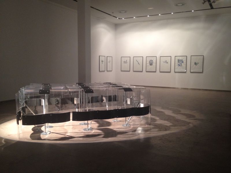 En la antigua Roma había una práctica militar muy utilizada por las legiones en los asedios llamada “la tortuga”, una estrategia que consistía en la protección de los soldados en formación utilizando la unión de sus escudos a modo de caparazón, los hombres de primera fila protegían el frente, los soldados situados en los laterales y en la última fila podían cubrir los flancos y la retaguardia, mientras que los que quedaban en medio eran los encargados de defender la parte superior, una práctica lenta pero segura que conecta con otros formatos que también interesan al artista, planteamientos más o menos estáticos, muebles e inmuebles, como lo son el bunker, la trinchera o el blockhaus. Ya hemos anticipado que Avelino Sala recurre a elementos vinculados al control, a la represión y al poder, pero también a estructuras de defensa y de posible ataque, para construir unas piezas tridimensionales que se mueven entre la fina ironía de sus esculturas y la rotundidad de sus instalaciones. “Tortuga” es una estructura modular realizada con los escudos transparentes de las fuerzas antidisturbios. Se trata de una escultura de corte minimalista acompañada de una serie de luces en el interior, y que, metafóricamente, habla sobre la defensa pero también sobre el vacío, sobre el hermetismo del estado, del poder, y la distancia de éstos con el ciudadano. Una pieza transparente pero rígida e inexpugnable, inaccesible e impenetrable para el individuo, la sociedad, sus intereses y sus reivindicaciones, compuesta por unos elementos que, sin duda, son uno de los símbolos más inquietantes del poder desigual de este estado que se ha instaurado en la zona gris de nuestro tiempo.