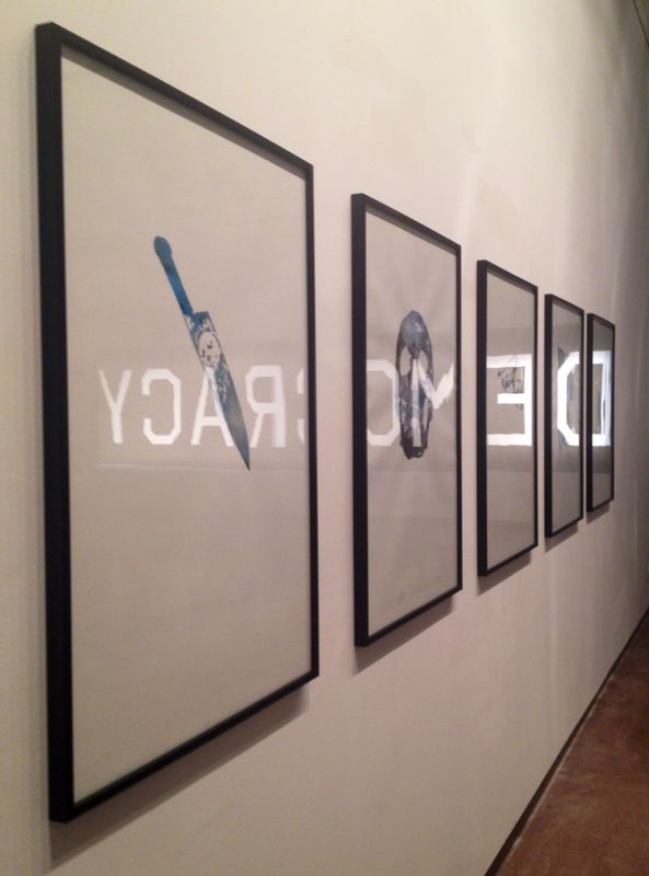 “Tortuga”, al igual que ya lo hiciera “BlockHouse”, se refiere a la incorporación de la barricada en la galería o en el museo, en esos centros de arte contemporáneo que debieran estar concebidos como lugares para la creación y para la resistencia, espacios dinamizadores del intelecto, prácticos y activos, que tendrían que servir para generar soluciones y cambios gracias a la transmisión del conocimiento. Mientras, el título de la exposición, “Lo (hiper)real absoluto” (2013-2014), interpela a un proyecto mucho más amplio que se constituye como un diario visual y objetual que engloba diferentes imágenes referidas a la vida y a la muerte, al poder y al contrapoder, pero también a la memoria personal y a la colectiva; hongos nucleares, puños americanos, cámaras de vigilancia, el jocker como icono, piedras y calaveras, completan este ideario que también tuvo presencia en “Amanecer dorado”, su exposición anterior, en forma de bocetos en oro y acuarelas monocromas. Si lo inquietante de las sociedades actuales está relacionado con el miedo, la violencia y la extraña sensación de inseguridad dentro de la seguridad excesiva; con la crisis global y la quiebra de esa felicidad ficticia vinculada al estado de bienestar, podemos decir que, la única salida para que el arte contemporáneo pueda tener una función cierta y un efecto en la sociedad, es la de crear y reforzar algunos símbolos, actitudes y acciones actuales que van asociadas directamente a la lucha o a la no aceptación de lo establecido. Un arte que esté enraizado en los procesos de comunicación, donde la obra del artista sea la imagen de su libre pensamiento y que, además, enlace con una idea de conocimiento que esté dirigida a todos nosotros[4].