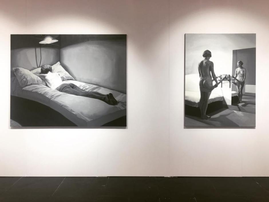 Pero los refugios no duran eternamente y de nuevo lo siniestro acecha por todas partes. Hay en la obra de Cristina Toledo (Las Palmas, 1986) una tesis que deja en evidencia que la imagen creada debe ser algo perturbador. Su pintura, que también difumina las líneas entre la fotografía y el óleo, nos transporta a un espacio en el que la visibilización se confronta de forma permanente con el enmascaramiento, con la imagen prohibida, con la censura. En Una historia victoriana (2018) es la auto ocultación de las mujeres por parte de las propias mujeres la que nos habla de lo femenino (auto)reprimido y de la lucha de la mujer por cambiar lo establecido. Su trabajo transita esas líneas de lo perverso (Sacrifice, 2017) que continúa cuestionando los cánones de belleza oficiales del patriarcado y que, sin embargo, siguen considerándose “atractivos” y “deseables” en la actualidad.