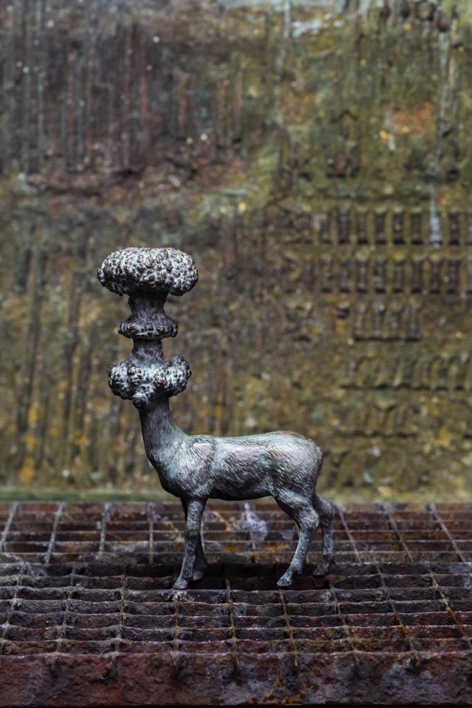 “Nopalia” es el evocador título de la serie de esculturas con la que Nicolás Laiz Placeres participa en “Salvajes”. Una palabra inventada que nos remite a un país imaginario de extensos campos de nopal, un lugar mágico donde cohabitamos con lo natural, donde lo selvático y lo desértico, el mar y la lava, entran en fusión y en colisión. Es precisamente en esa relación entre seres humanos y naturaleza donde Laiz pone su punto de mira: “Nopalia” asume la forma de un conjunto de singulares tótems compuestos por una amalgama de fetiches y de micro-paisajes que, analizados atentamente, nos ayudan a desencriptar la mística de unas piezas cuya apariencia orbita alrededor de lo religioso, de lo enigmático, de lo primitivo y de lo salvaje, pero que según el propio artista: “pretenden hacer de conector entre los espíritus de la naturaleza y el ser humano”.
