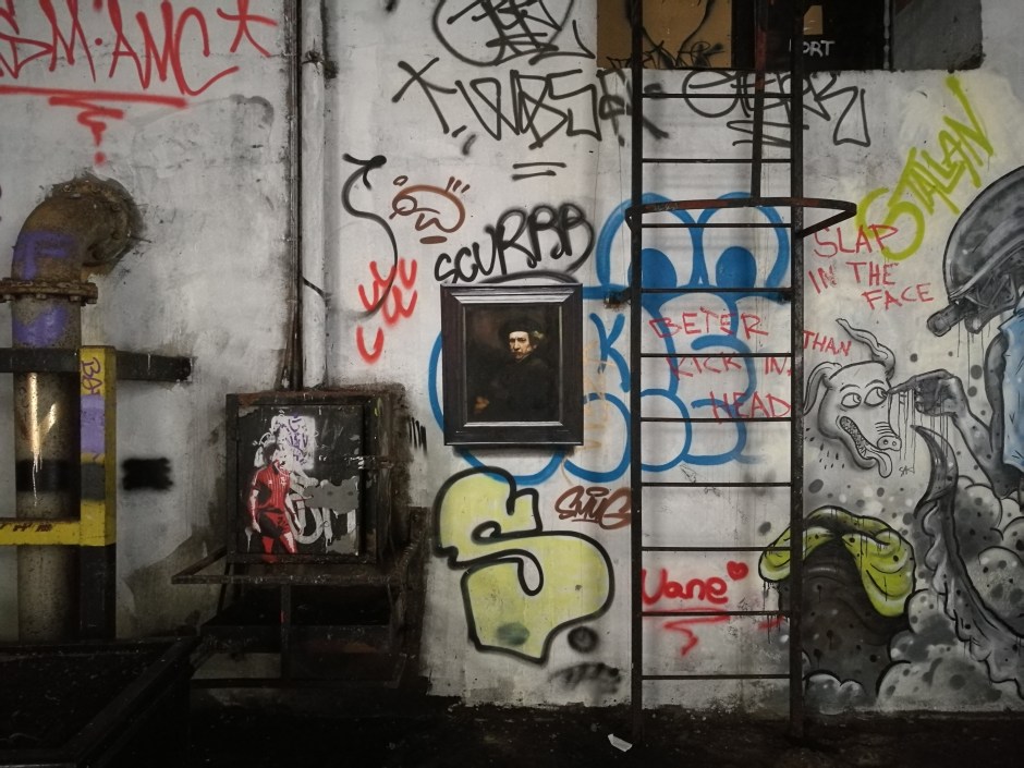 Julio Anaya Cabanding es un artista que también alterna sus trabajos de taller con sus intervenciones pictóricas en el espacio público, normalmente en lugares abandonados. Recurriendo a la técnica del trampantojo, tanto visual como conceptual, el creador ocupa estos contextos inhóspitos, degradados, decadentes y periféricos, pintando copias de obras reconocibles de la historia del arte, trascendiendo el mero apropiacionismo, extrayéndolas del ámbito museal y llevándolas a esos entornos aparentemente inadecuados para recibirlas. Dice Anaya Cabanding que sus acciones podrían definirse como el acto poético que desbloquea simbólicamente las pinturas del espacio sacro institucional para colocarlas en otros lugares, generando nuevos sentidos derivados de ese encuentro. Una resignificación que trasciende el enunciado del propio elemento.