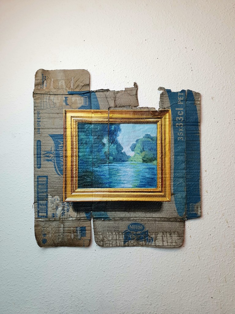 Unas piezas que se refieren al concepto de aura y de unicidad, a la poética de la deslocalización, a la controversia entre las zonas seguras y los territorios salvajes, una propuesta que reproduce obras significativas de la historia del arte sobre materiales de descarte, cartones desechados, paredes que se caen, provocando una fricción entre el icono y lo sórdido, lo excelente y lo precario. Una pintura que es acción, intervención, instalación y performance, una pintura que, cuando accede al formato expositivo más tradicional, apela a esa distribución acumulativa y saturada de aquellos grandes salones parisinos, pero en lugar de hacerlo sobre los materiales y los colores nobles de esos espacios decimonónicos, lo hace sobre unas superficies pobres y desahuciadas que dejan en evidencia la fragilidad absoluta de la creación y la cultura contemporánea.