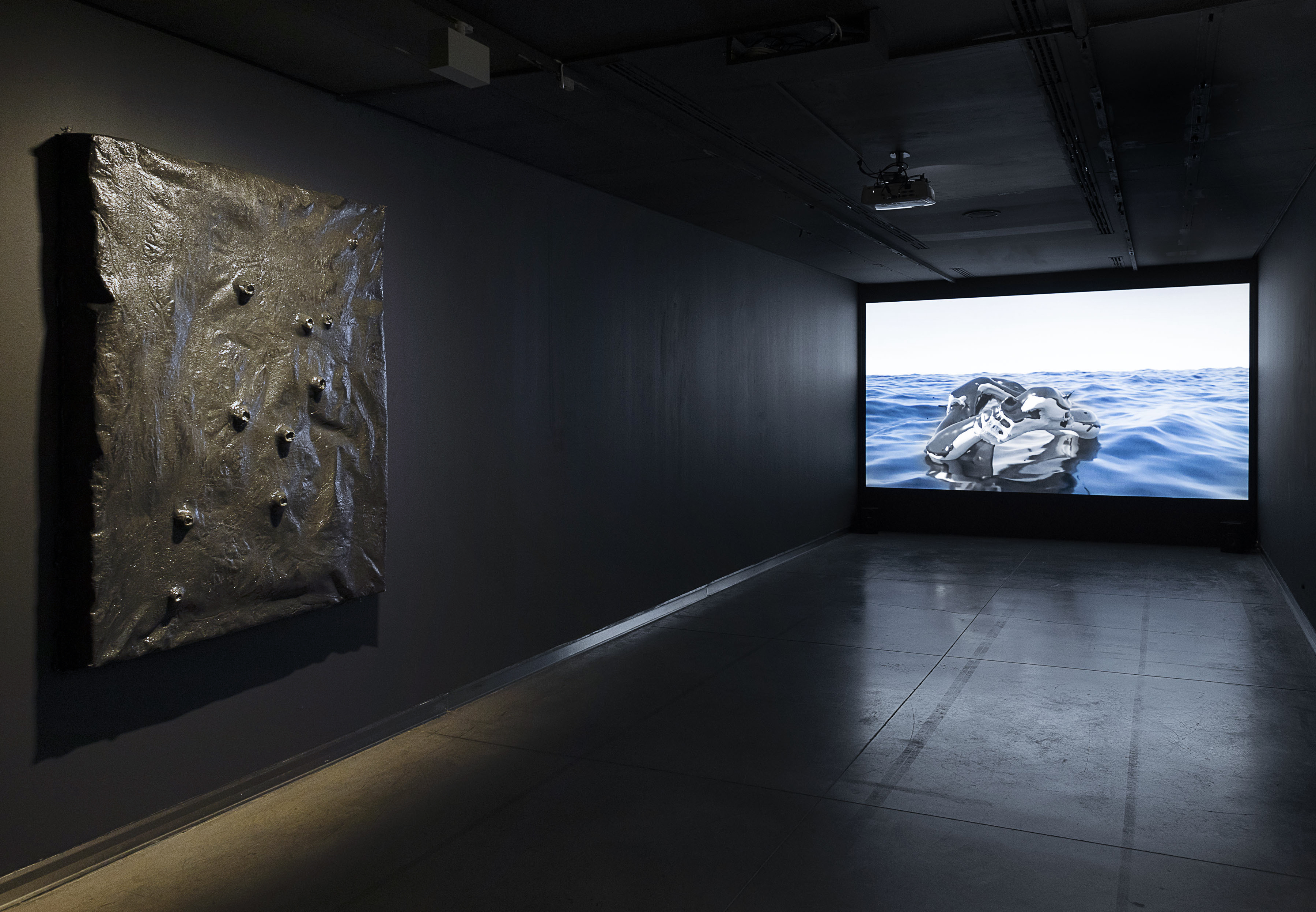 Pero este misterio que subyace puede convertirse en revelación ante el sobrecogimiento que provoca lo sublime, ante aquello que nos atrae y que nos repele a partes iguales, ante el caos, la desmesura y lo inefable, ante lo inasible, lo insondable y lo incontrolable. Como una carcasa que se va quedando sin su contenido, el propio cuerpo de la artista va sufriendo este proceso de vaciamiento, de trepanación, donde los órganos se convierten en una masa abyecta y los huesos se pulverizan, donde ella aparece atravesada por la nada más absoluta, fagocitada por una materia interna que ha entrado en descomposición, una putrefacción de su cuerpo que perfora el dibujo de la carne para transformarse, no ya en una herida, sino en la memoria de una imagen, en un acceso que conecta con todo aquello que permanece en el más allá, en el más adentro. El peso de la aberración es como la carga de la carne muerta sobre nuestras espaldas, como el lastre de las emociones sobre nuestra conciencia, una enorme instalación, un increíble autorretrato, que actúa como una metáfora inquietante de estos tiempos convulsos y extraños.