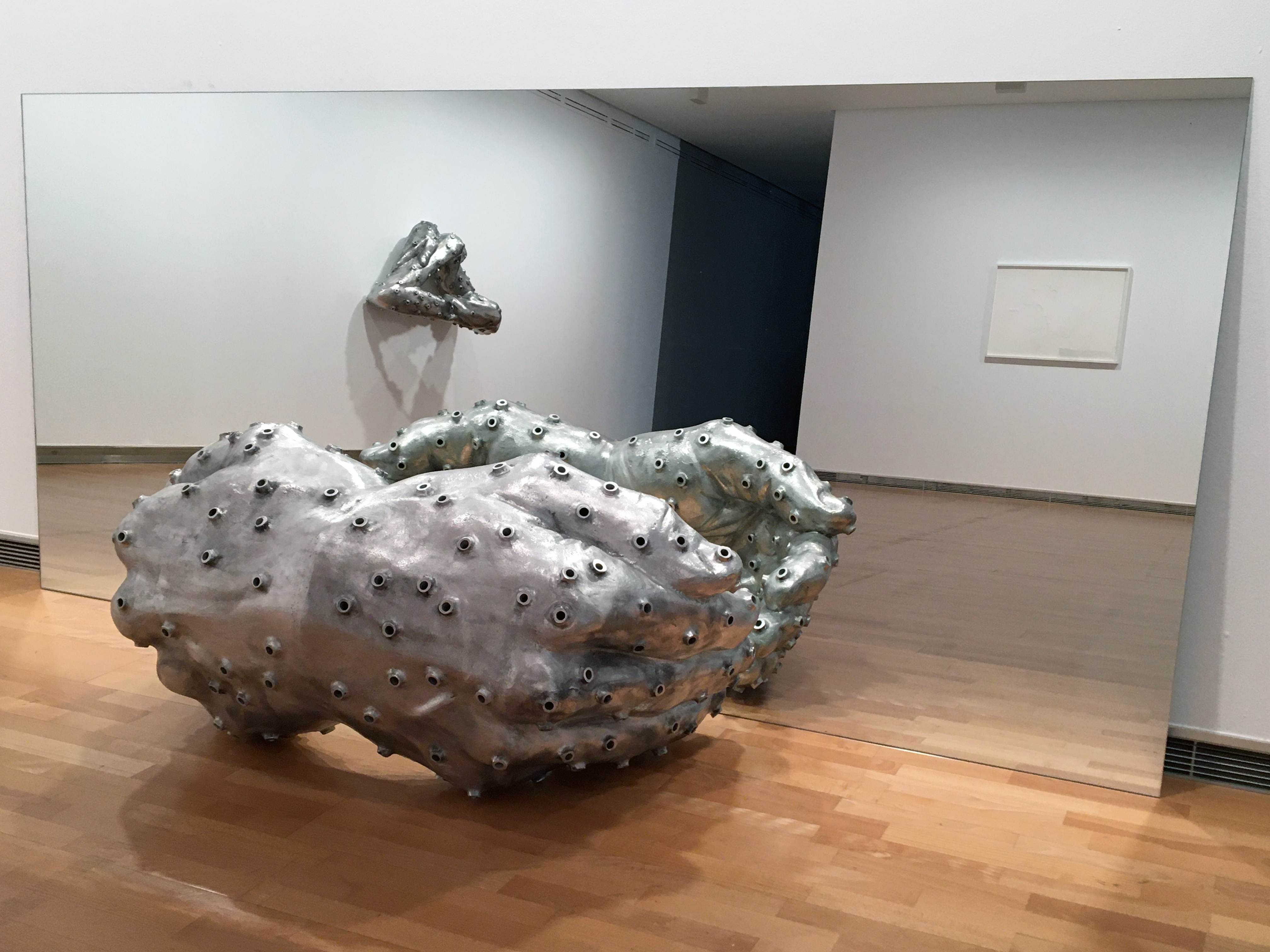 Es por este motivo por el que Amparo Sard siempre se ha interesado por ese concepto de siniestro que da vueltas alrededor de la belleza conocida. Partiendo de una perspectiva más ética que estética, aunque sin renunciar a las formas que le dan sentido, la artista establece su territorio de análisis en las emociones del alma, recurriendo a una experiencia introspectiva que nos dirige inevitablemente hacia el psicoanálisis, pero también hacia todo aquello que hemos vivido y que nos sirve para poder comprobar, desde nuestro propio conocimiento, lo que es verdad. Para ello tiene una importancia fundamental el error, ya que es el principal indicador de que algo ha mutado, de que algo ha dejado de ser como debería ser, un cambio que se traduce en tensión, en una tensión que será mayor cuanto más grande sea la falta de información que poseemos. La materia va cambiando mientras supera a la imagen (re)conocida, incorporando deformidad, generando nuevas y sorprendentes dimensiones o conceptos y composiciones incomprensibles. Como muy bien explica Sard: “es como si aquello que trasciende hubiera pasado de una imagen-símbolo, que solo la entienden los humanos, a una imagen-signo que también es entendida por los animales: un olor, un grito, una sonrisa, una caricia”. Este regreso a lo esencial, a lo intuitivo, a lo atávico como forma de sobrevivir al caos ecosocial y a la desesperación tecnológica, es la causa por la que Amparo Sard soporta, por nosotros y sobre sus espaldas, todo El peso de la aberración.